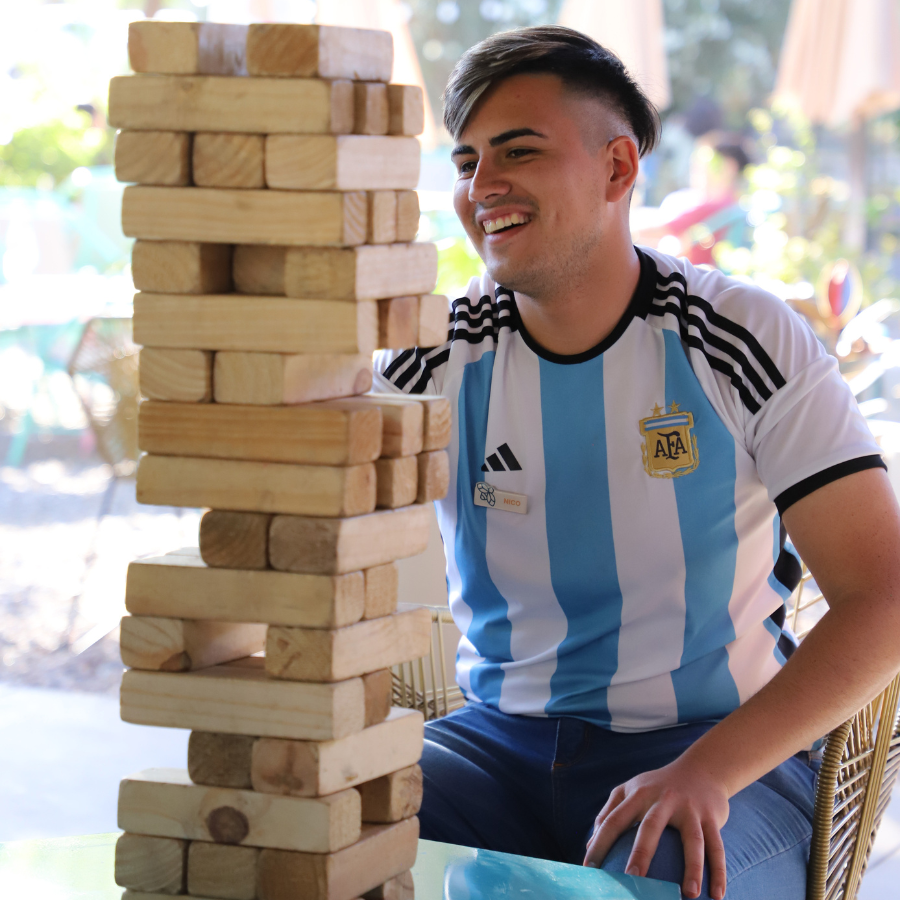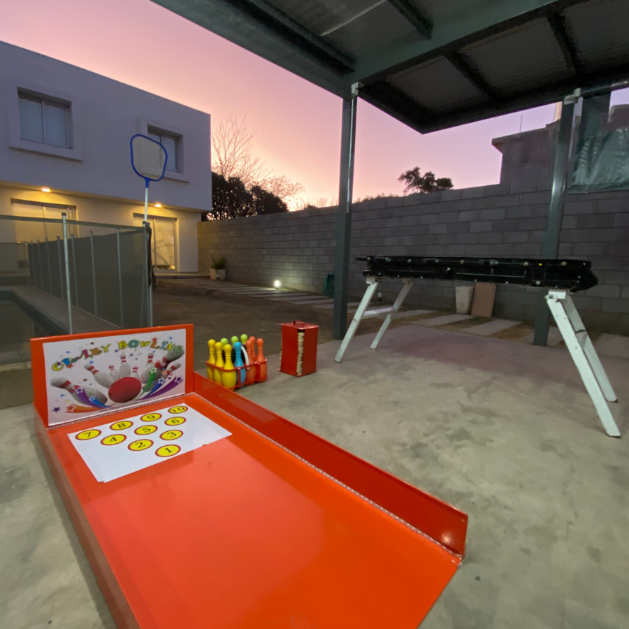 • A elegir entre (Metegol/ Tejo de Aire/ Yenga gigante/ Sapo/ Juego de Luz AudioRitmica / mini basquet/ mini bowling/ domino gigante)